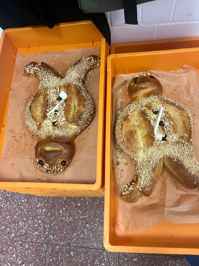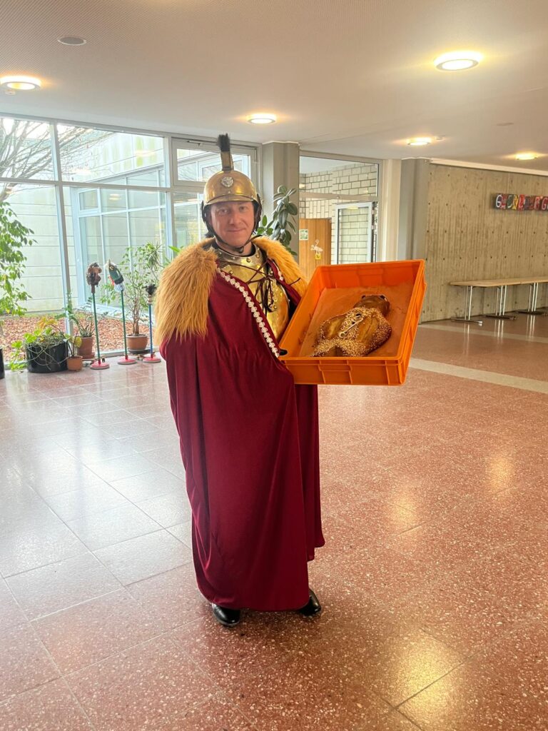 Am Vormittag teilten alle Klassen in einem gemeinsamen Martinsfrühstück einen großen Weckmann, um so den Sinn des Martinsfestes nachzuvollziehen.